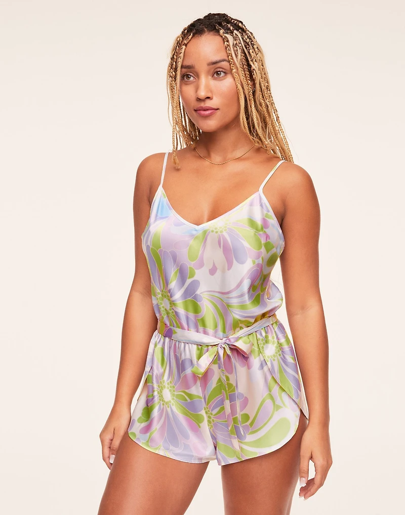 This floral print romper is perfect for everyday wear. The floral print is lined with satin and features an overlap side tulip hem. The self-fabric adjustable straps allow you to customize the fit. (Available in sizes XS-4X).