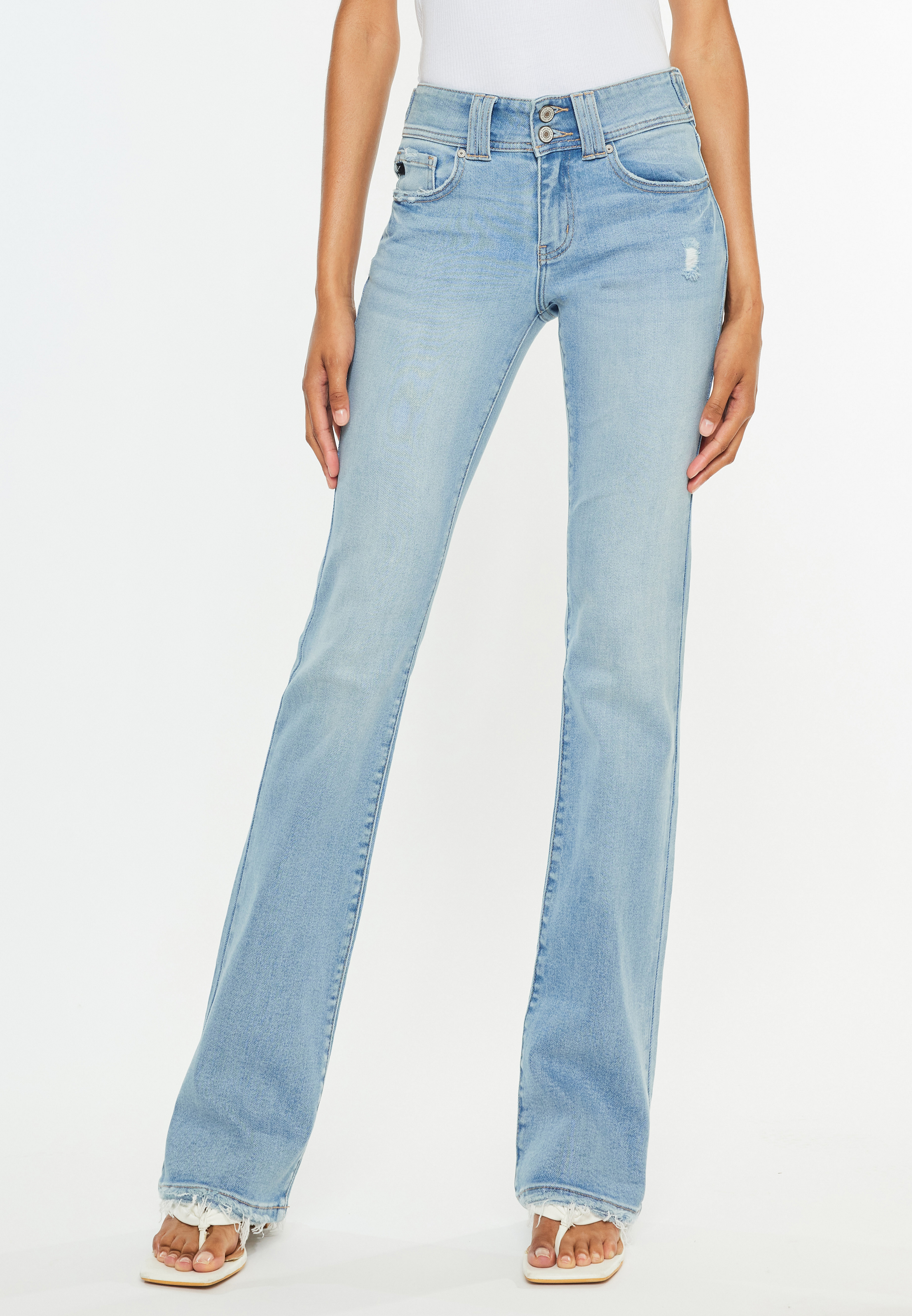 KanCan™ Mid Rise Double Button Frayed Hem Bootcut Jean