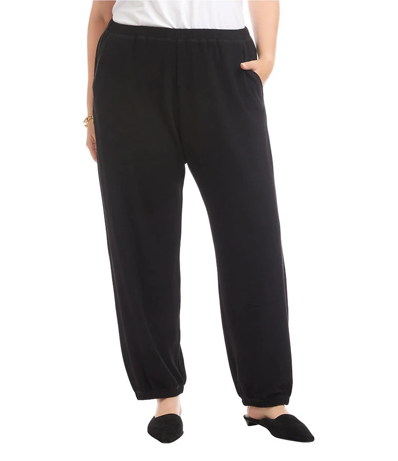 From Karen Kane Plus, these sweatpants feature: Brushed double knit fabrication Elasticized waistband Side front pockets Elasticized cuffs Pull-on construction Approx. 28.25" inseam, 13.25" rise Rayon/polyester/elastane Machine wash Imported. Designed for all-day comfort, these joggers are crafted from brushed stretch double knit fabric for a soft feel with flexible ease. Featuring an elastic waistband and elastic cuffs at the ankle, they offer a relaxed yet flattering fit. Finished with two side pockets, they re the perfect blend of laid-back style and everyday practicality.