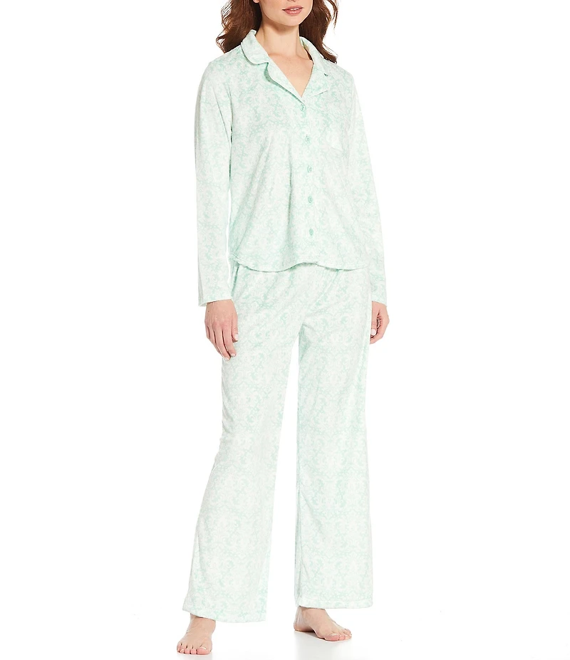 Karen Neuburger Winter Brocade Print Fleece Notch Collar Long Sleeve 3-Piece Pajama Set