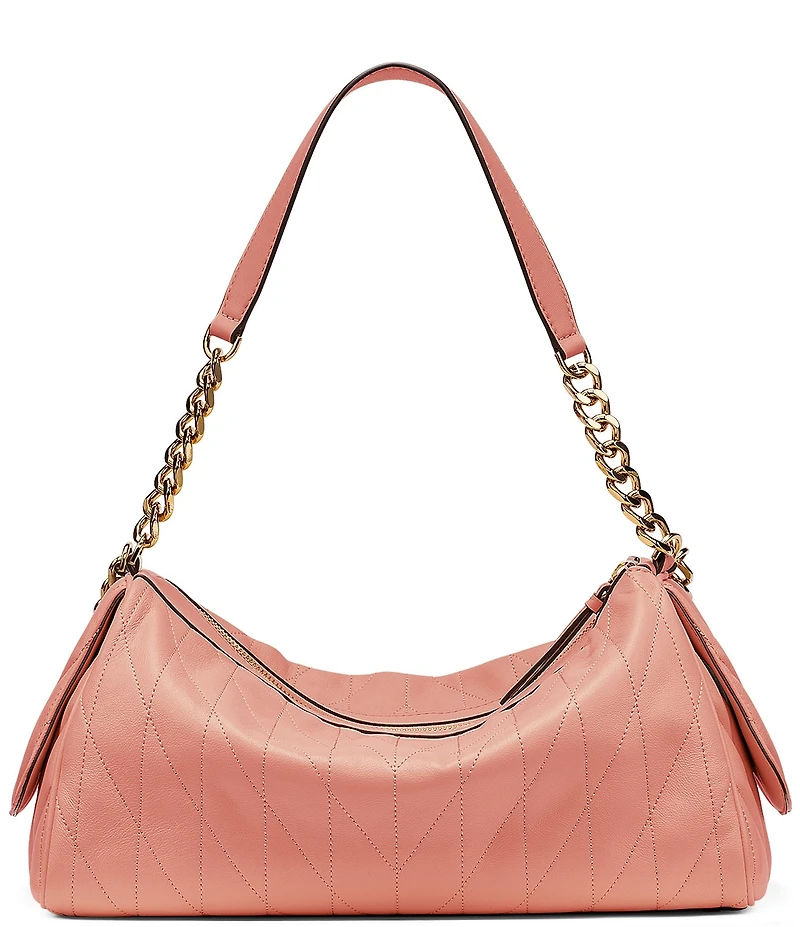 From KARL LAGERFELD PARIS, the Lafayette Satchel Bag features: 100% lamb leather Top zipper closure Double top handle with chain Interior zipper pocket Card slots Approx.13" L x 7" W x 8" H Spot clean Imported.