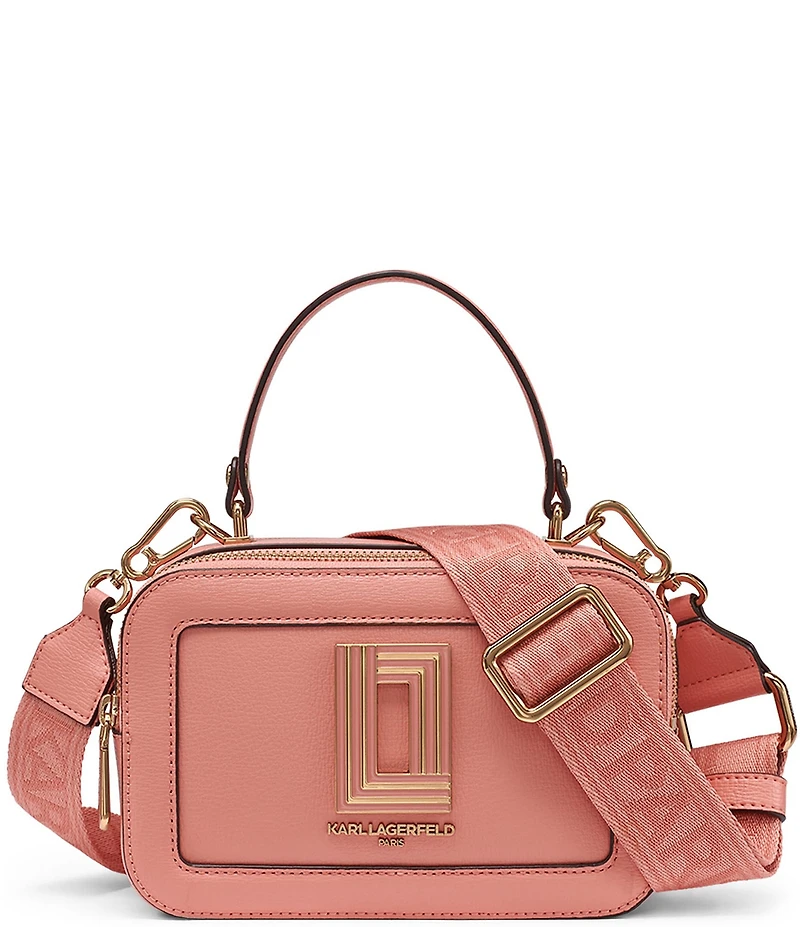 From KARL LAGERFELD PARIS, the Simone Satchel Bag features: 100% cow leather Double top zipper closure 1 back slip pocket 2 slip pockets 4 card slots Approx. 4" handle drop Approx. 14" - 23" adjustable crossbody strap drop Approx. 8" L x 5" H x 3.5" W Imported.