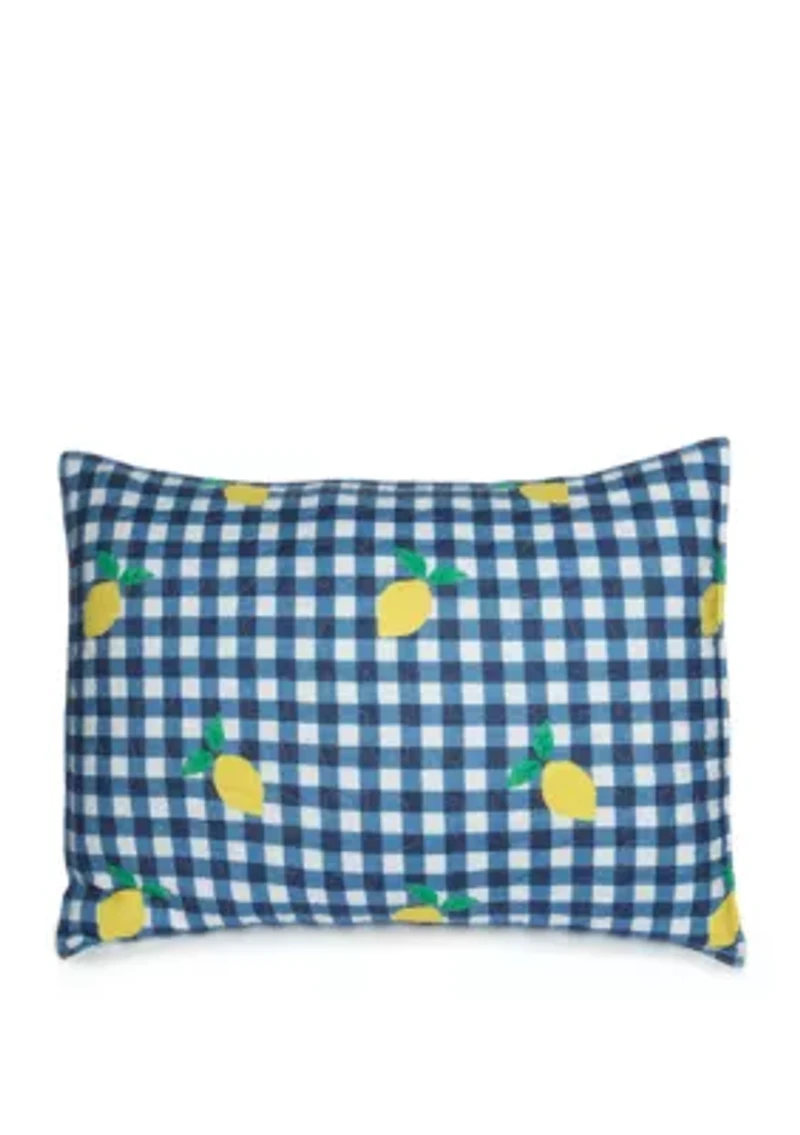 The Karter reversible cotton sham from Crown & Ivy™ features a navy and yellow lemon icon pattern with a complementary enlarged lemon icon reverse. This soft cotton piece is a must-have for adding energy and charm to your bedroom oasis. Reversible Lemon pattern Imported Belk Exclusive Product Specifications 20 in x 26 in Material & Care Cotton Machine washable