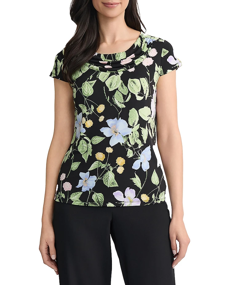 From Kasper Petite, this top features: Woven fabrication Blouse silhouette Cowl neckline Short sleeves Floral print Pull on construction Approx.23" length Polyester/Elastane Dry clean Imported.