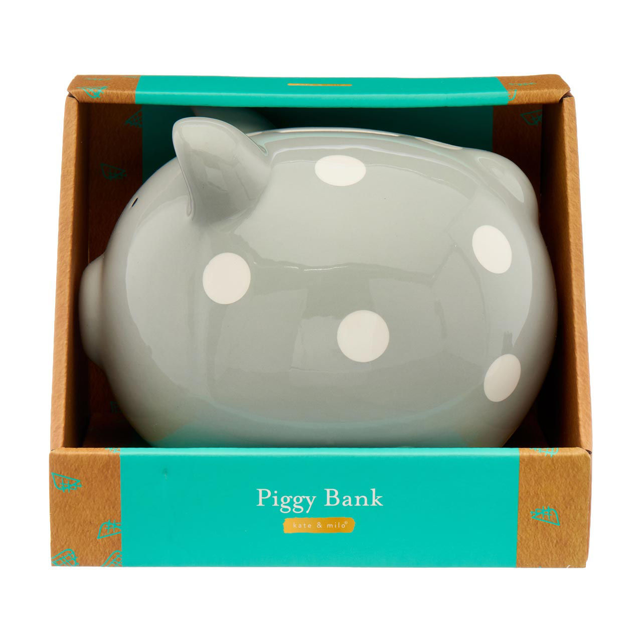 Whether you're looking for a cute gift for a baby shower, a birthday, or simply a special treat for yourself, the Kate & Milo Spotted Gray Piggy Bank is an excellent choice. It's a wonderful blend of practicality and charm, designed to inspire good saving habits while adding a touch of personality to any room.