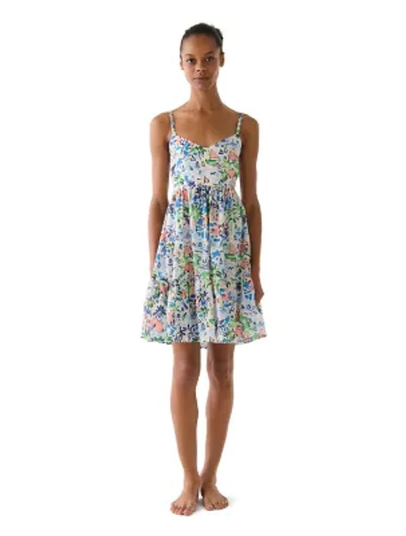 A lightweight cover up mini dress that's perfect to pack in your carry on and coordinate with all your swimsuits on vacation. An allover coastal print is inspired by vibrant beach towns in the summer. Imported Material & Care 100%Cotton Hand wash