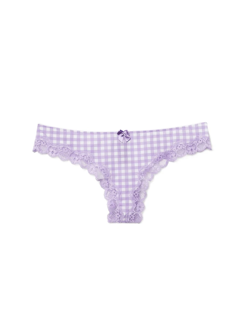 The Kati Thong Plaid Purple micro thong is a playful twist on a classic silhouette. Effortlessly sleek and comfortable, it’s perfect for everyday wear. (Available in sizes XS-XL.)