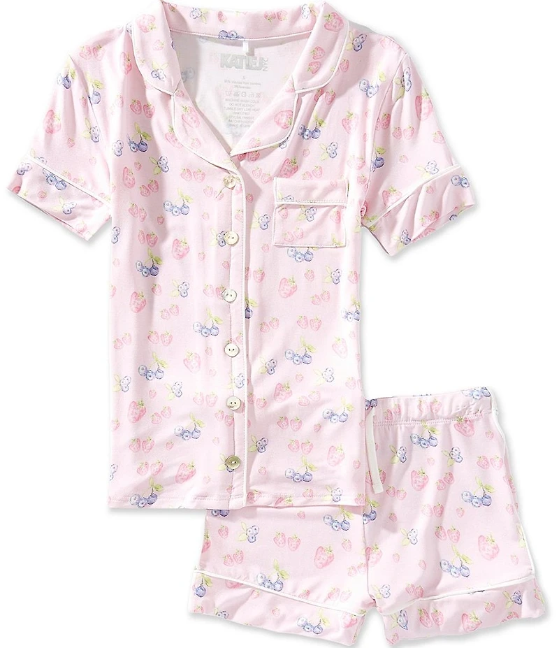From KatieJNYC, this lounge set features: Top: Cute berry print Camp collar Short sleeves Button-front closure Tagless Snug, tight-fitting Shorts: Matching print Elastic waist with drawstring Pull-on styling Care/Features: Temperature cooling This item is designed to fit snugly to help keep children safe. This item is not flame-resistant. Viscose from bamboo/spandex Machine wash/dry flat Imported.