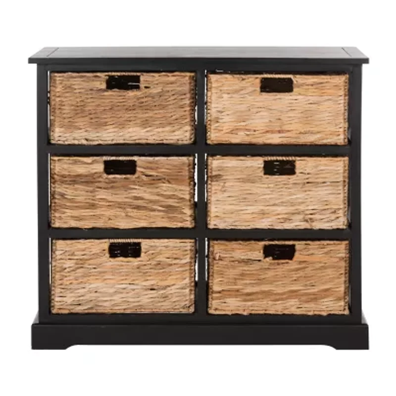 Effortlessly emanating rustic farmhouse charm, this Keenan chest solves organizing woes in style. Six pull out baskets allow for no fuss storage in any room, pairing perfectly with Keenan's distressed finish.