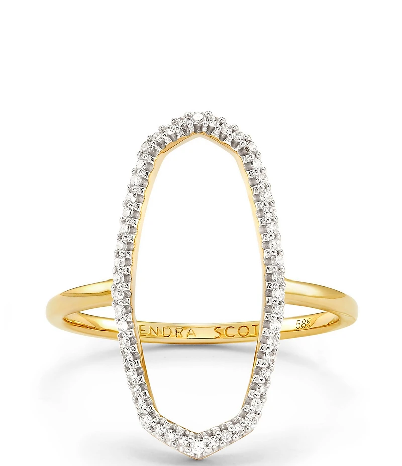 From Kendra Scott, this ring features: Designed with our iconic shape and a dusting of diamonds, the Dani 14k Yellow Gold Open Ring in White Diamond is a modern statement with a hint of glamour that you never have to take off. 14k gold White diamond Top approx. 22.8mm Bottom approx. 1.3mm Carat weight approx. 0.155 Diamond Quality: Near-colorless, SI Please note: Due to the one-of-a-kind nature of the medium, exact colors and patterns may vary slightly from the image shown. Imported.