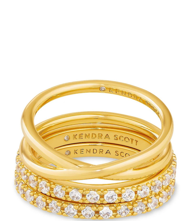 From Kendra Scott, this ring set features: Set of 3 Band silhouette Plated brass Approx. 0.5" W Imported.