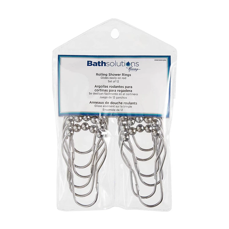This set of twelve Kenney Beaded Roller Shower Curtain Rings are designed to coordinate with many bathroom hardware finishes. The beads help the ring to glide effortlessly over your shower rod. Each package includes 12 beaded roller rings, fitting all standard shower liners and rods.