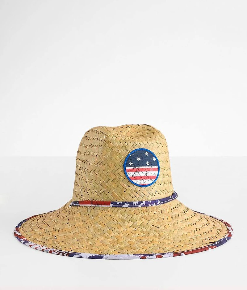 Flag patch straw hat Adjustable chin strap 5" brim One size fits most