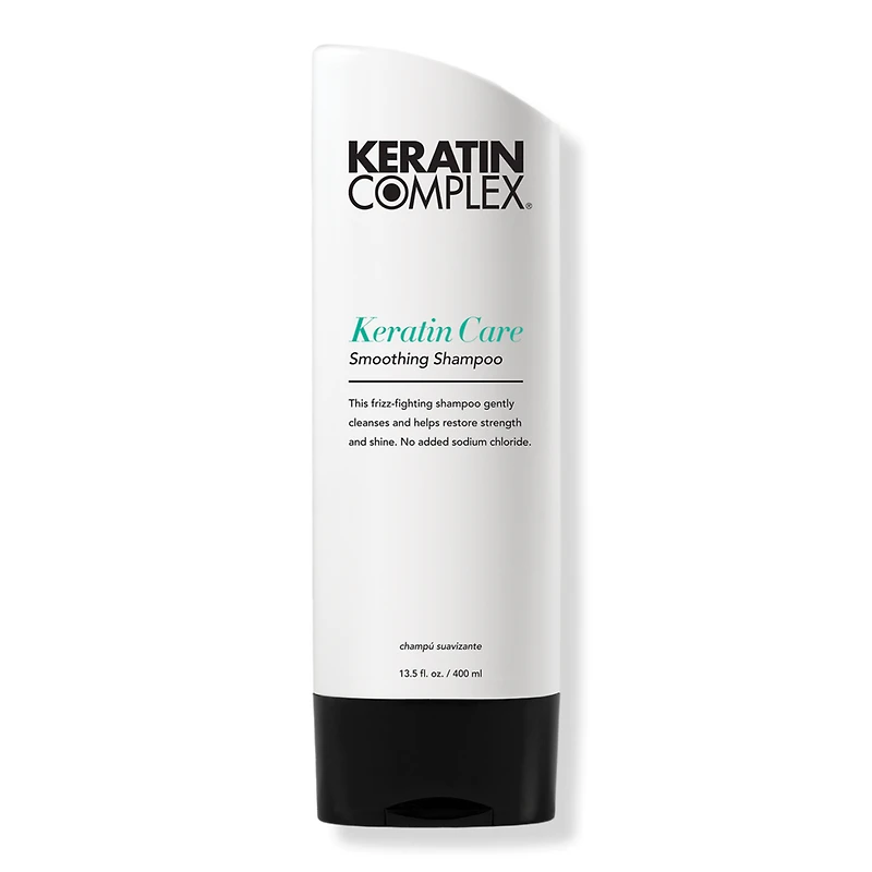 KERATIN CARE SMOOTHING SHAMPOO 13.5OZ. Benefits: Fights frizz and smooths for all hair types. Helps restore resilience, smoothness, and brilliance. Locks in moisture and enhances softness, smoothness, and shine. Formulated without sodium chloride to protect the longevity of Keratin Complex smoothing treatments. Can be used with or without a smoothing treatment. No added sodium lauryl sulfate (SLS). Key Ingredients: A blend of Keratin Complex's proprietary Signature Keratin, wheat, and soy proteins fights frizz, softens, and conditions. :