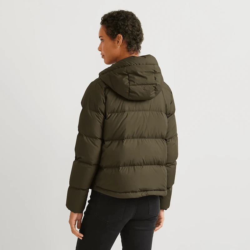 Runway meets snow day - the perfect puffer. This hoodie is overstuffed with premium 650 fill down and features a water-repellent polyester shell. An adjustable hood and waist seal out chilly breezes.