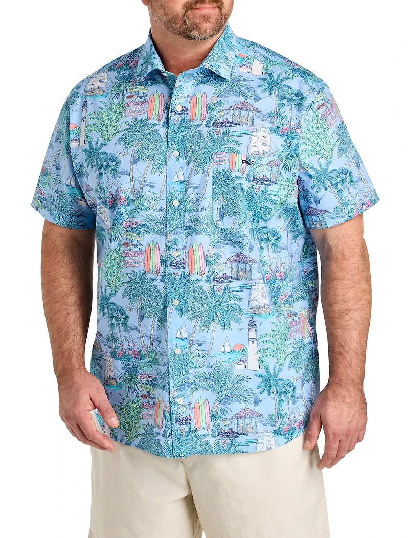 Vacation, staycation or an island state of mind, this vineyard vines sport shirt channels all the good vibes. Designed with precise proportions and the perfect Big and Tall fit, it's comfortable and easy to wear in a linen-stretch blend that allows for the freedom to move without restriction. Pair it with shorts, jeans or our favorite, swim trunks, for a complete, casual look.