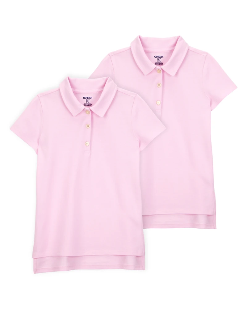 Kid 2-Pack Pique Uniform Polo Shirts - Pink