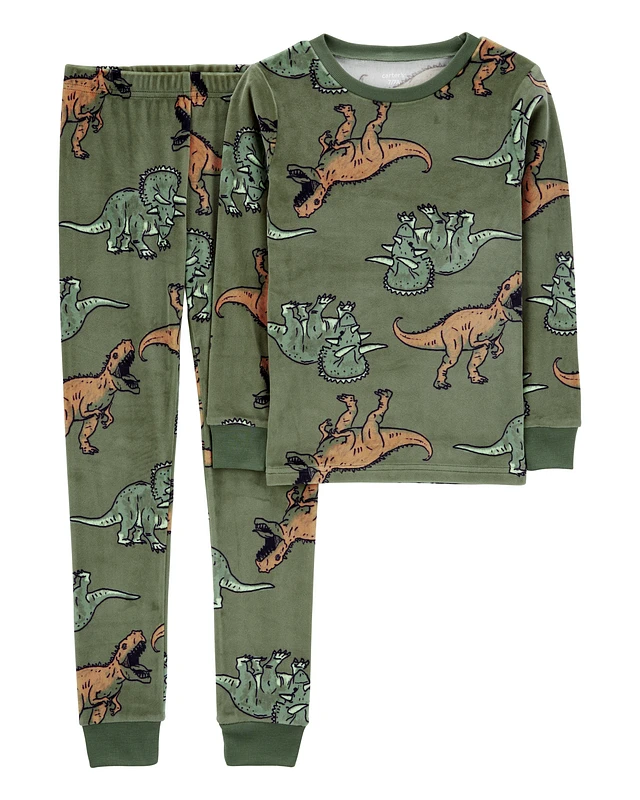 Kid 2-Piece Fuzzy Velboa Dinosaur Pajamas