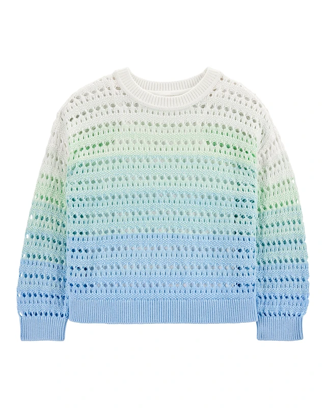 Allison Daley Cool Blue Ombre Long Sleeve Crew Neck Rib Trim Sweater