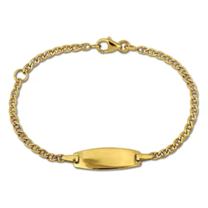 Add a refined touch to your little one’s style with this elegant marine link ID bracelet. Crafted in radiant 14K yellow gold, its distinctive link design brings a sense of strength and timeless sophistication. The polished ID plate offers a personal element, making it a meaningful keepsake to treasure. Its sleek and balanced look makes it perfect for everyday wear or special moments. A classic piece designed to shine with lasting beauty and significance. Lobster closure Polished finish Warranty available, 60 days Italy Imported Product Specifications 5.5" Material & Care 14K Yellow Gold Metal, Yellow Gold Clean with a soft cloth.