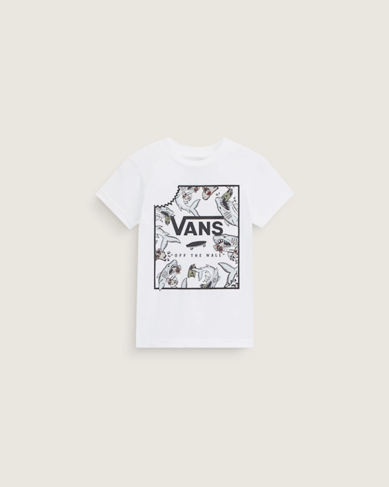 The Little Kids Shark Bite T-Shirt is a short sleeve crewneck tee made from a heavier weight cotton and features shark graphics.