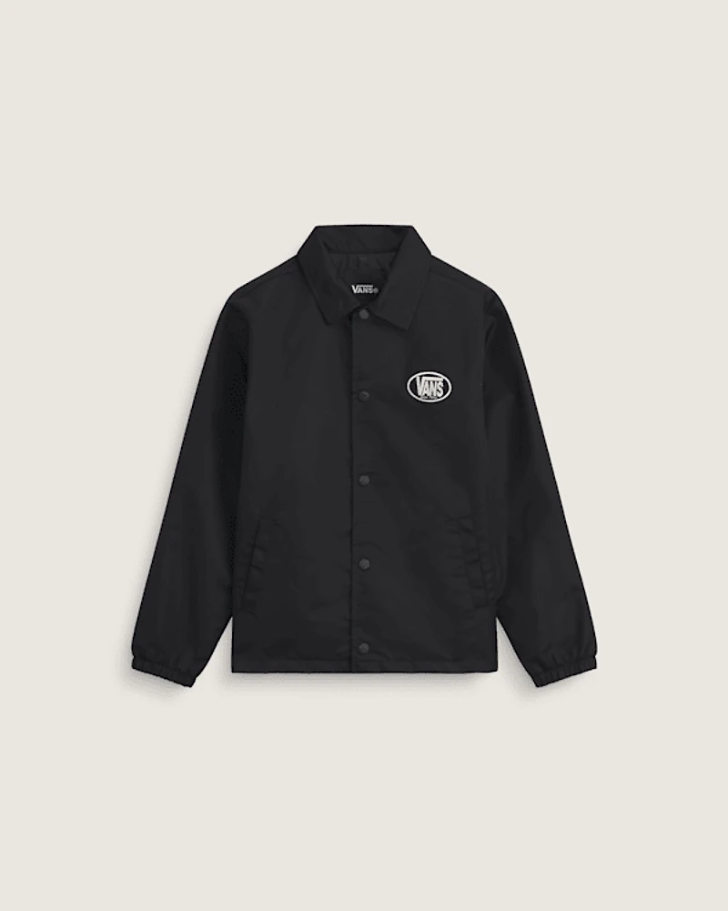 Inspired by California's skate and workwear roots, this coach jacket brings casual cool to your everyday look. The water-resistant shell helps keep you dry when the weather turns, while the loose fit and snap front offer easy, relaxed wear. Made with 100% recycled polyester, it's a sustainable choice that doesn't sacrifice on Vans' signature style.
