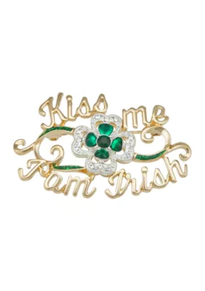 Festive and fun, this Napier pin features the playful phrase “Kiss Me I’m Irish” in a bold design. Perfect for St. Patrick’s Day or adding a touch of whimsy to jackets, bags or hats, it’s a cheerful accessory that spreads holiday spirit. Imported Material & Care Metal Clean with a soft cloth