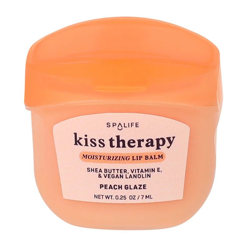 - Kiss Therapy peach glaze lip balm that keeps your lips soft, smooth & totally snatched!