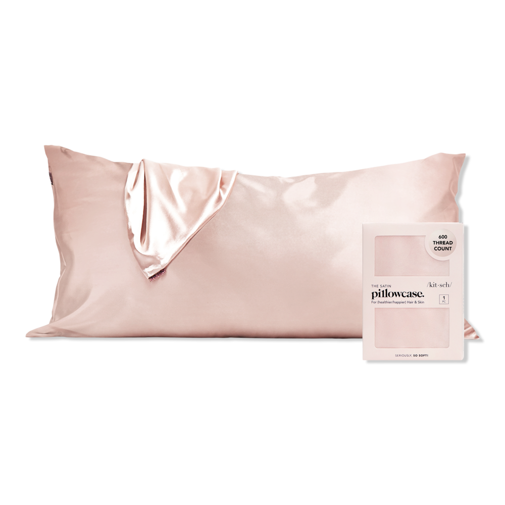 KING SATIN PILLOWCASE BLUSH. Features: Soft satin fabrication won't agitate your strands while you sleep, allowing you to wake up frizz free and ready to take on the day. May help prevent facial creases from sleeping. Gentle on eyelashes, eyebrows and most skin & hair types. Get a good night's rest with these luxurious pillowcases!. Includes: 1 king size pillowcase (36"x19") with zipper. :