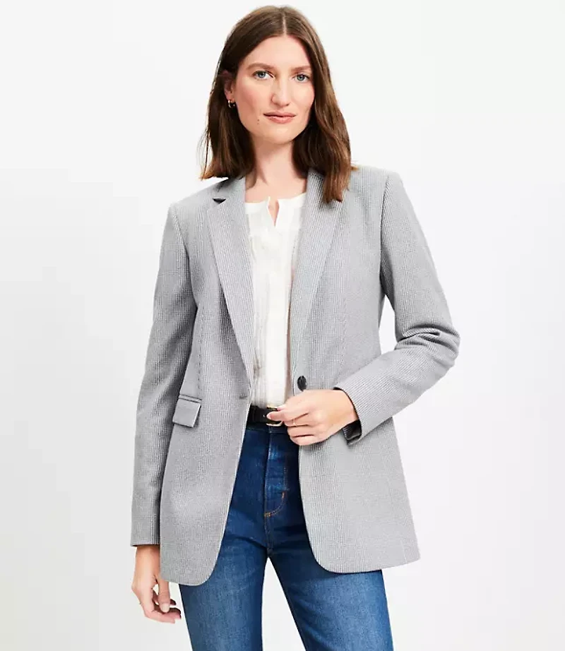 Suit up in effortlessly flawless chic with this single - button structured knit blazer, a modern tailored layer that never fails to impress. Notched lapel Long sleeves Single - button front. Front flap pockets. Back vent Lined, Bullet1: 28 1/2"long, Imported:, Fit: Relaxed an easy shape that's just shy of loose, Length: Regular - hits below natural waist, Fabrication: Shell 100% Polyester, Lining: 100% Polyester, Garment Care: Machine Washable Loft Knit Modern Blazer Size 8 Grey Women's by Loft Size Regular - 8 Grey Multi Women's Blazers, Outerwear Shell: 100% Polyester Lining: 100% Polyester Machine Washable