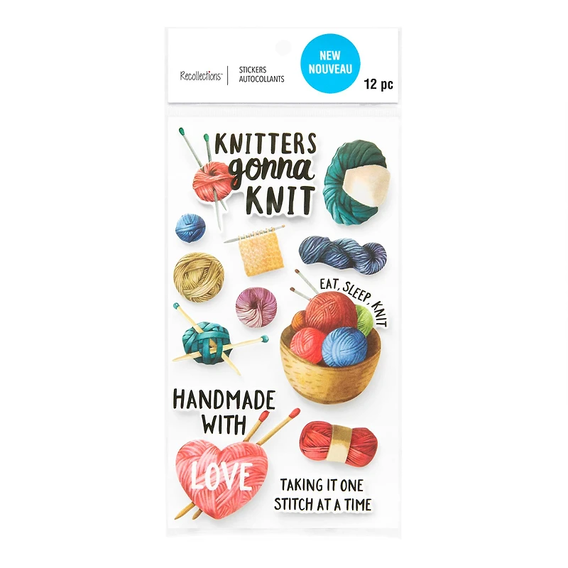 Use this knitting sticker pack to instantly jazz up your papercraft project. You can also use them with stamps, embellishments or paints to accentuate your invites, scrapbook pages or journals.Details:Knitting themed3.875" x 7" (9.84cm x 17.78cm)12 stickersPCV and paper