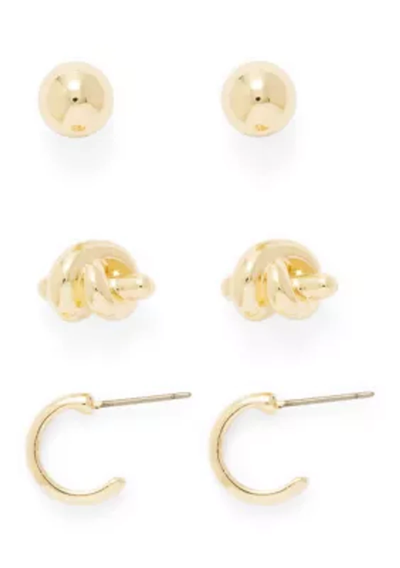 Knotted Stud Huggie Trio Earring SetKnotted Stud Huggie Trio Earring SetKnotted Stud Huggie Trio Earring Set