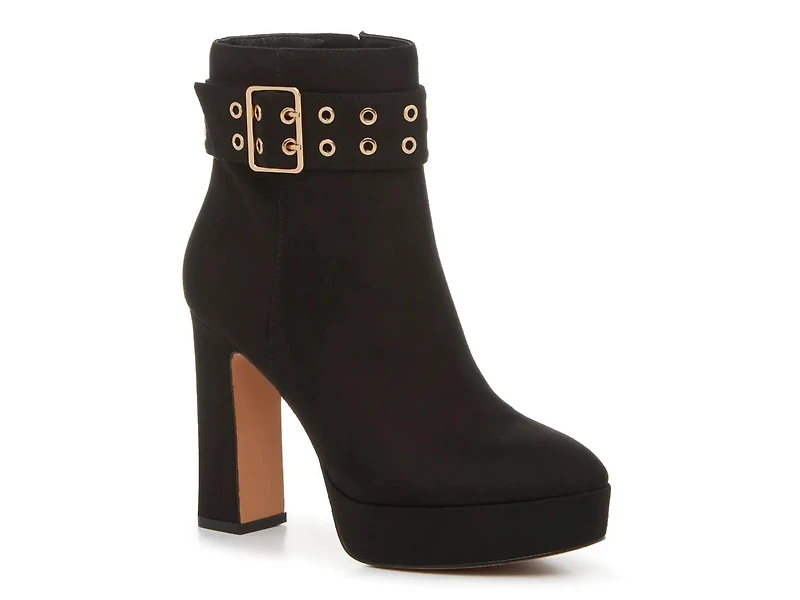 Stand tall in the Kobanie booties from Jessica Simpson. This trendy pair is sure to turn heads thanks to the strong platform design, the ultra high heel, and the edgy buckle detail around the ankle.