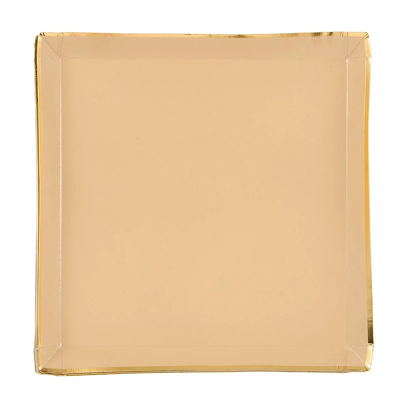 Add a touch of natural elegance to your party table with our Kraft Design Shallow Square 9.25" Plates. These stylish plates feature a neutral kraft design with sleek foil-stamped accents, bringing a refined yet rustic charm to your gatherings. Perfect for serving appetizers, entrees, or desserts, these durable plates combine functionality with fashion to enhance your event's aesthetic. Each pack includes 8 plates, ensuring you have enough for intimate dinners, festive celebrations, or casual get-togethers. The sturdy construction provides reliable support for a variety of foods, while the foil stamping adds a dash of shine that catches the eye. Ideal for birthdays, weddings, baby showers, or any special occasion, these kraft-inspired plates pair effortlessly with other natural-toned decor and tableware.