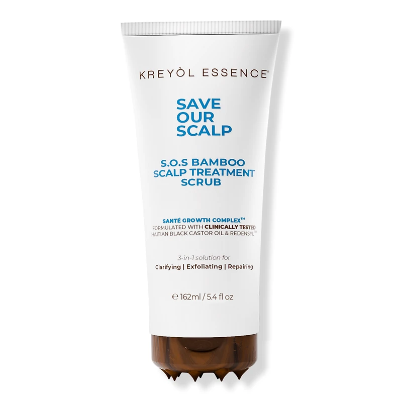 SOS BAMBOO SCRUB 5.4OZ. Benefits: Deeply cleans and helps eliminate product buildup, residue, and excess oil.. Nourishes and replenishes hair and scalp.. Detangles and helps reduce frizz.. Helps hair appear thicker and fuller-looking.. Adds shine and bounce to curls.. Key Ingredients: Haitian Black Castor Oil. 95% of participants agree HBCO improves faster hair growth*. 92% agree their hair feels stronger and shinier*. Redensyl** - clinically proven to help hair appear thicker and fuller-looking. Biotin and AnaGain - helps hair appear thicker and fuller-looking. Keratin - repairs, helps reduce frizz, protects from humidity, adds shine, increases styling malleability. Bamboo - exfoliant. Charcoal - adds bounce, cleanses and removes build up and residue that weigh down hair. Key Notes: 3 in 1 solution for clarifying, exfoliating, repairing. Kreyl Essence formulations are made from natural and botanical ingredients. Kreyl Essence is maniacal about protecting the environment, and empowering women and farmers. Every purchase you make will have a positive and direct impact..