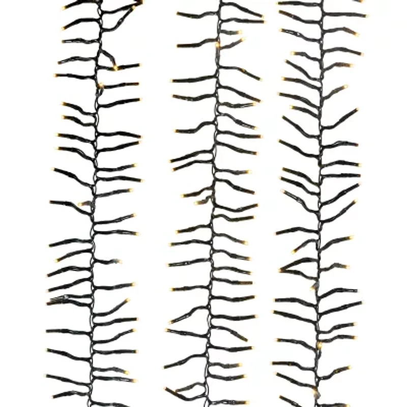 This 480-Light 16-Foot Connectable Warm White LED Cluster Garland from Kurt Adler is a fun, modern addition to your home holiday lighting decor. This LED cluster garland features 480 warm white lights, green wire, a 13-foot lead wire with controller and an outdoor UL adapter. Up to 3 garlands can be connected at one time.