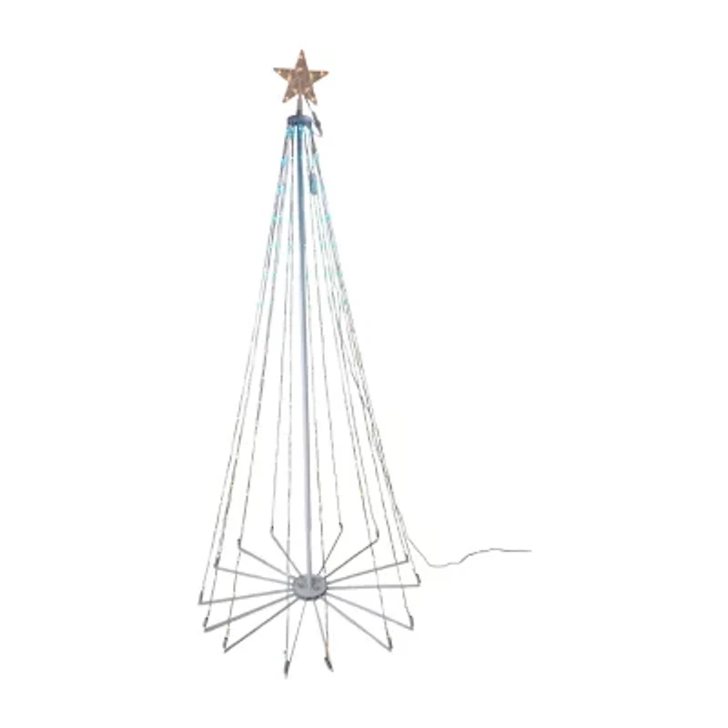 The 6 foot pre-lit led collapsible decorated tree is a unique style of Christmas tree.It features strings of rainbow-colored lights that are connected at the top and fan out to make a tree shape at the bottom.There is a rainbow star at the top.It is made of 265 rgb led lights, has a 9-foot lead wire, and 4-inch bulb spacing.It has waterproof line control and microphone and a remote control for both indoor and outdoor use.