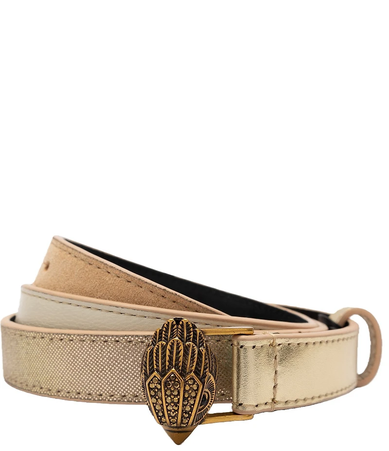 From Kurt Geiger London, this belt features: Leather / PU Eagle keeper fastening buckle Approx. 0.78" W S/M: approx. 32.5" L M/L: approx. 35.5" L L/XL: approx. 38.5" L Spot clean Imported.