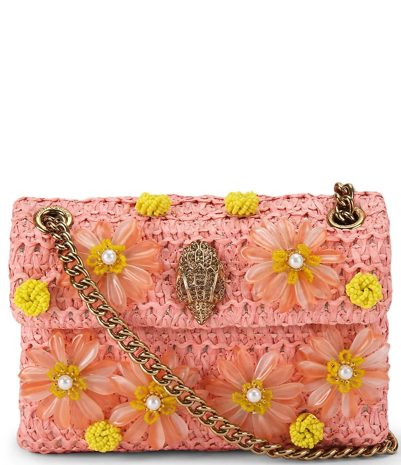 Kurt Geiger London Mini Raffia Embellished Floral Kensington Chain Crossbody Bag