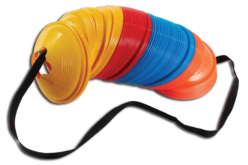 Organize and store your cones with ease with the Kwik Goal Cone Carrier Strap. Made of nylon for strength and durability, this strap can be carried or slung over the shoulder for easy transportation. The strap can hold up to 150 6A10 small disc cones or approximately 75 6A13 jumbo disc cones.