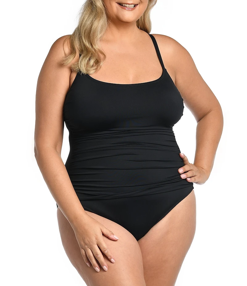 La Blanca Plus Size Island Goddess Scoop Neck Tummy Control Tank One Piece Swimsuit