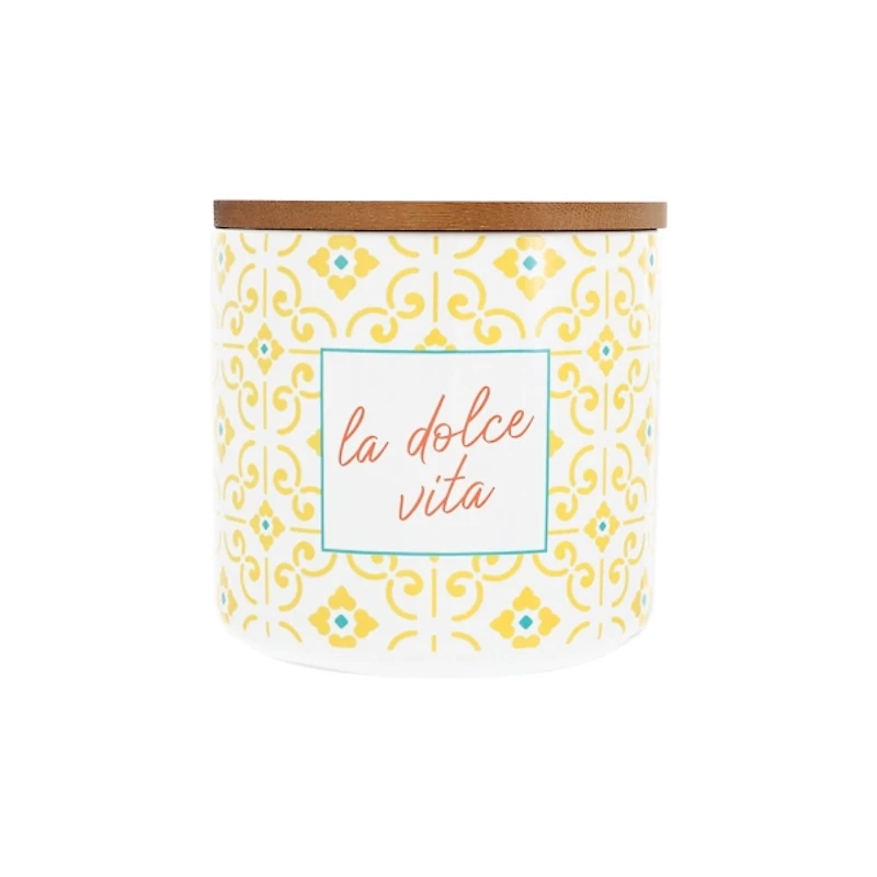 The La Dolce Vita Soy Wax Lemon Verbena Candle is crafted with a bright, zesty scent that will awaken a home! As the wax burns, it reveals a beautiful tile design. Candle measures 4H x 4 in. in diameter 14 oz. candle Ceramic container with gold lid Wrap around decorative print accented with the text "La Dolce Vita" 100% soy wax Lemon verbena scent Single wick design Includes matchsticks in tube packaging Care: Trim wick before each burn for a clean and even flame. Always burn within sight and keep away from flammable objects. This item is available at Kirklands.com only, not available in stores. Please note: this item cannot be shipped to APO/FPO addresses.