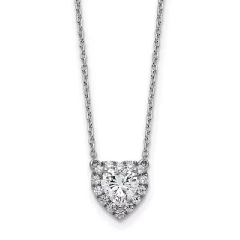 Lab Created 1.22 ct. t.w. Lab Grown Diamond VS/SI+ G+ 16-inch Halo Heart Necklace in 14K White Gold in Chattanooga, TN