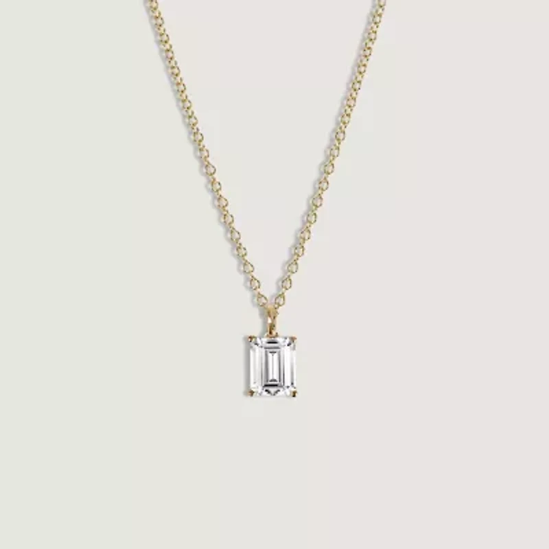 Lab Created 14k Gold Lab grown diamond ctw emerald cut solitaire pendant necklace