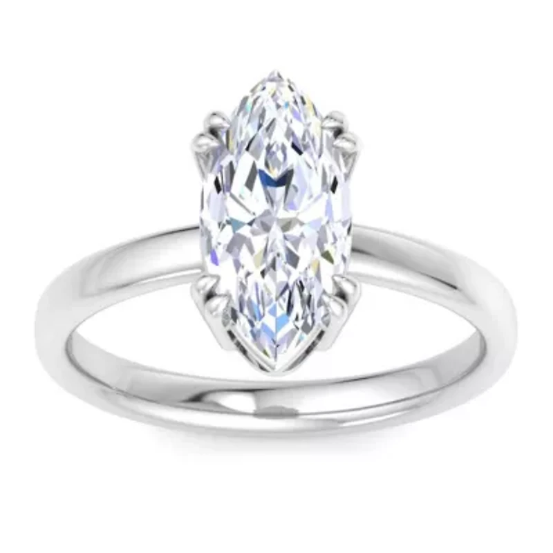 Lab Created 2 Carat Marquise Shape Grown Diamond Solitaire Engagement Ring Available 14K White and Yellow Gold