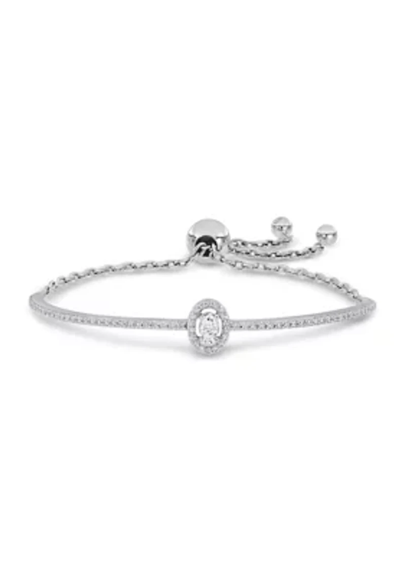 Lab Created 3/4 Ct DEW Created Moissanite Oval Halo Adjustable Bolo Bracelet in Sterling Silver