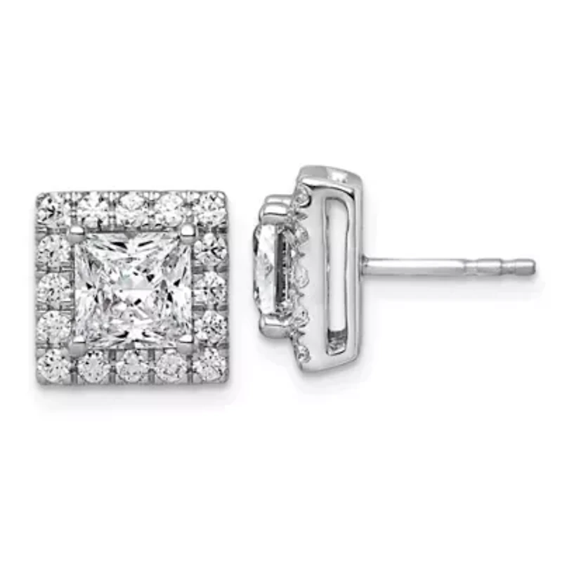 Lab Created 3.83 ct. t.w. Grown Diamond VS+ F+ Princess Halo Post Earrings 14K Gold in Chattanooga, TN