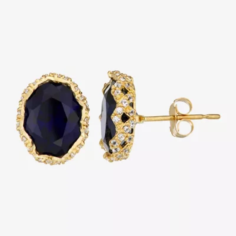 Lab Created Blue Sapphire 10K Gold 7.6mm Oval Stud Earrings