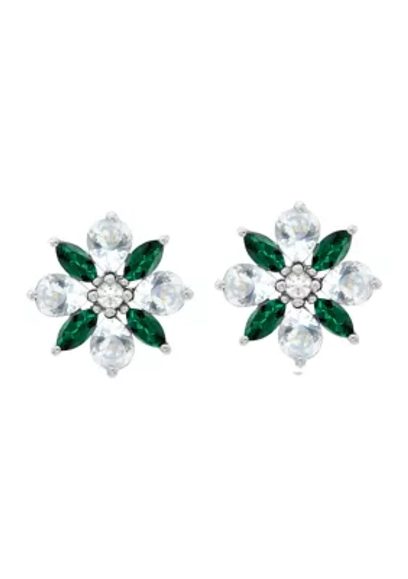 Lab Created Emerald and White Sapphire Flower Stud Earrings in Sterling Silver