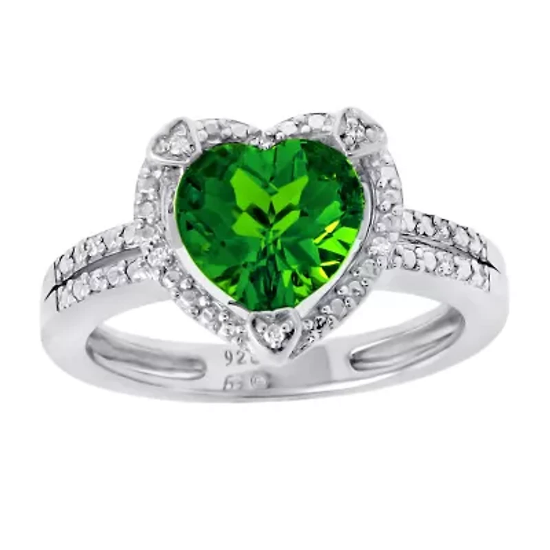 Lab Created Gemstone and Diamond Accent Heart Ring Sterling Silver